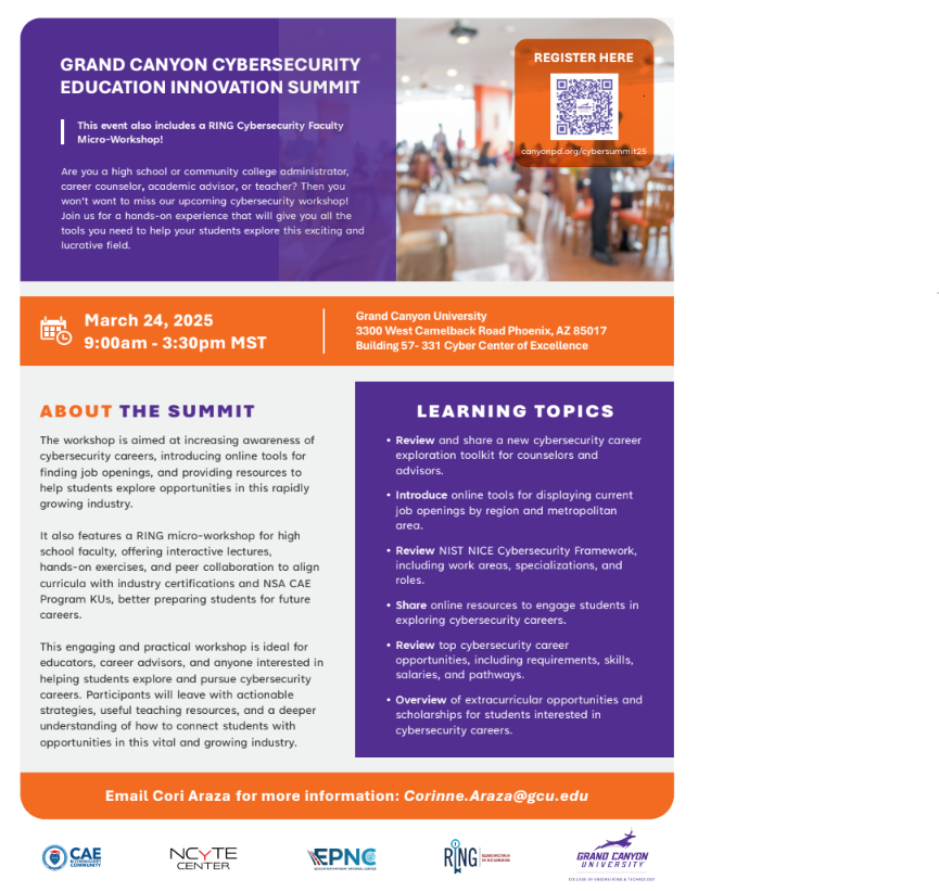 Grand Canyon Cybersecurity Education Innovation Summit Flyer