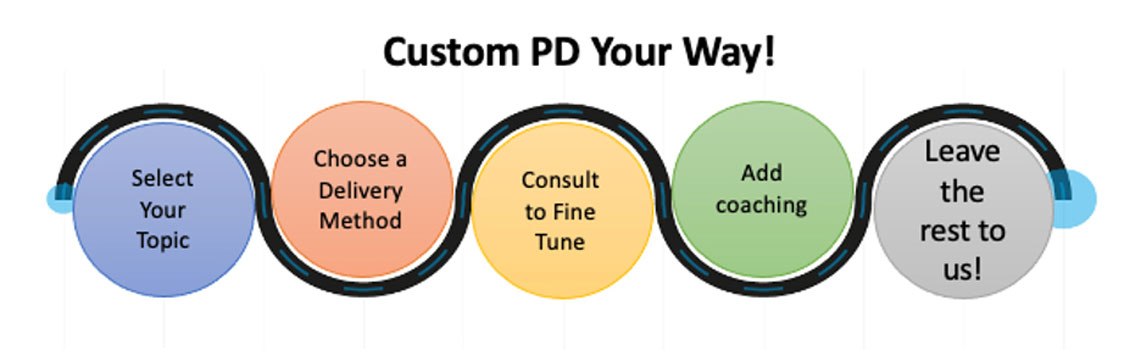 Working directly with administrators, teachers and staff, Canyon Professional Development develops content-specific career development resources and sessions focusing on your school’s current initiatives and goals. Use the steps below to create your customized professional development session.
