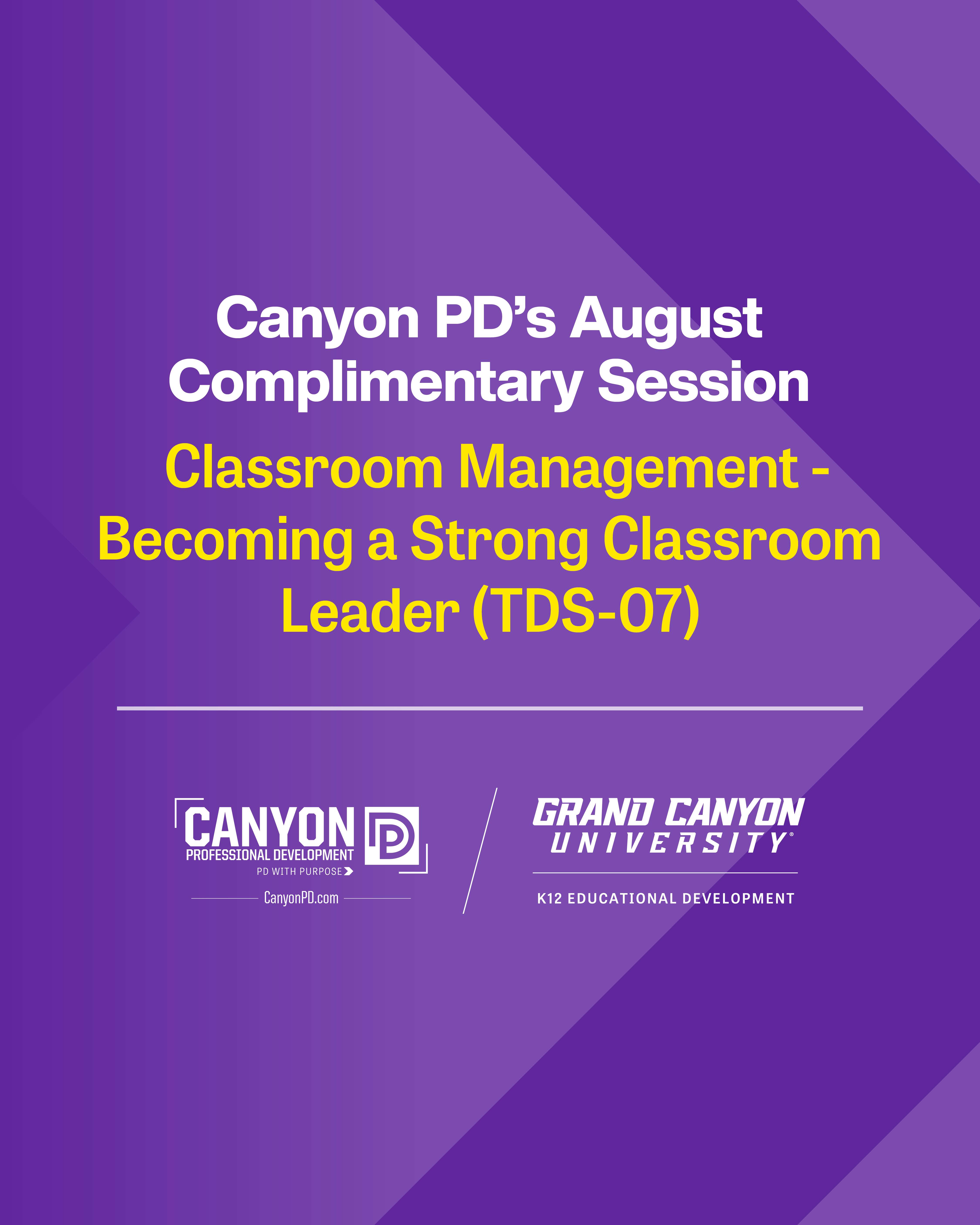 August session Classroom Management — Becoming a Strong Classroom Leader (TDS-07) at CanyonPD.MyClick4Course.com