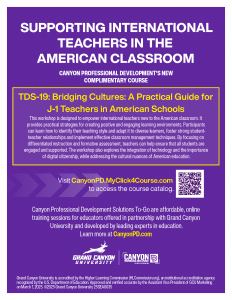 Check out Canyon PD’s Complimentary Session Aimed to Support International Teachers in the American Classroom
