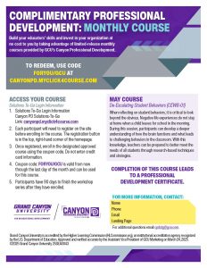 May course De-Escalating Student Behaviors (CEWB-01) at CanyonPD.MyClick4Course.com