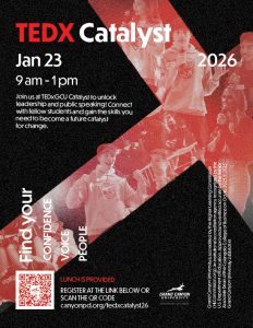 FreeJoin Us at TEDxGCU Catalyst to unlock leadership and public speaking! Connect with fellow students and gain the skills you need to become a future catalyst for change.