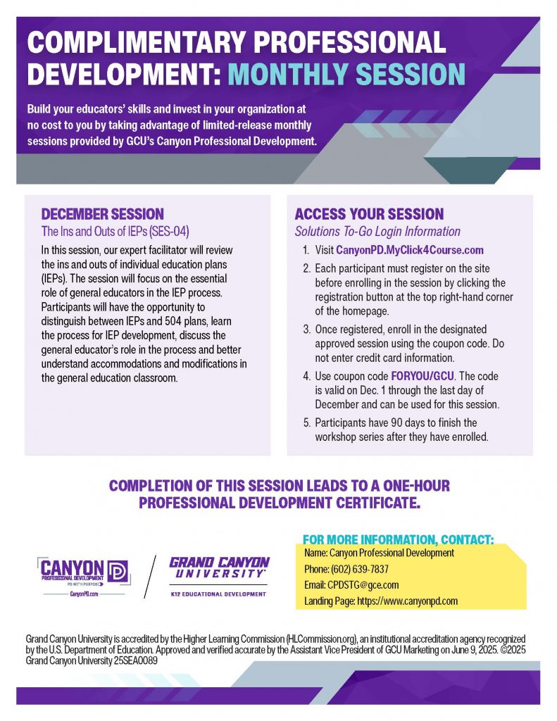 © 2025 Canyon Professional Development Privacy Policy Grand Canyon University